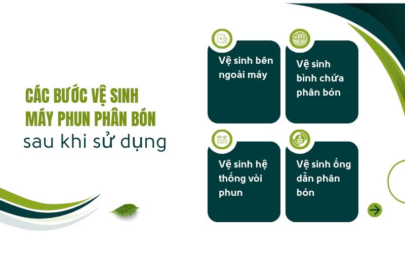 Việc vệ sinh máy sau mỗi lần sử dụng là một bước vô cùng quan trọng. Điều này không chỉ giúp kéo dài tuổi thọ cho máy mà còn đảm bảo rằng cây trồng của bạn nhận được lượng phân bón đồng đều và đúng chất lượng: