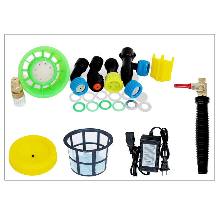 – Phụ tùng đi kèm : Lọc rác, Dây đeo, Cần phun, Tay cầm van bi, Bộ béc phun nhựa 4 béc, Cần 3 bec inox, Nắp bình nước, Bộ sạc, Dây nước 2 đầu răng.