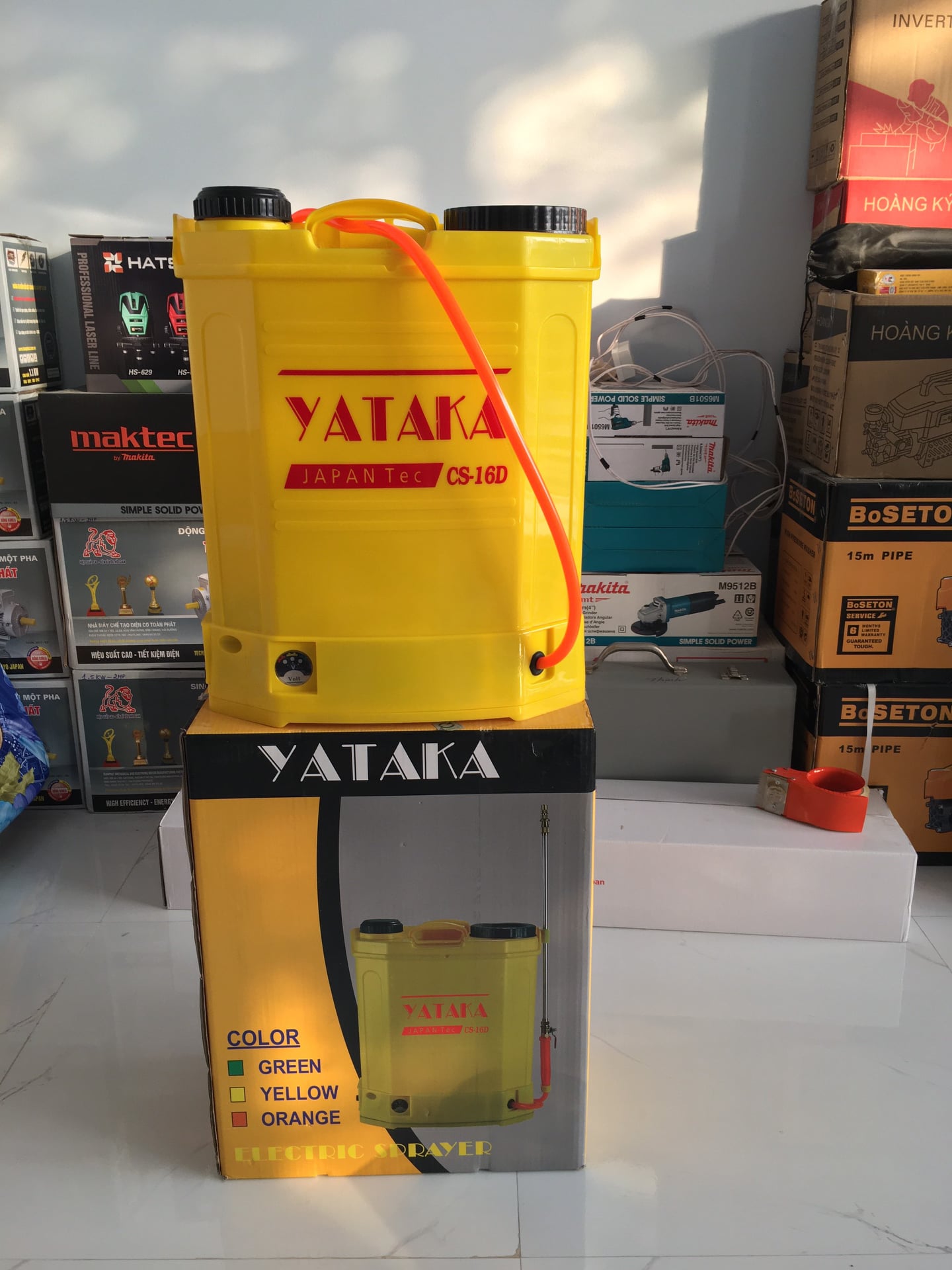 - Bình Phun Xịt Điện Yataka 16L CS-16D là dòng bình phun xịt điện thông minh, thiết kế tiện lợi giúp bà con nông dân tiết kiệm thời gian, công sức trong việc phun trừ sâu, diệt cỏ, dưỡng cây và sát khuẩn. Với dung tích lớn, vòi phun đa năng và pin sạc bền bỉ, sản phẩm phù hợp cho vườn cây ăn trái, ruộng lúa, rau màu, hoa cảnh