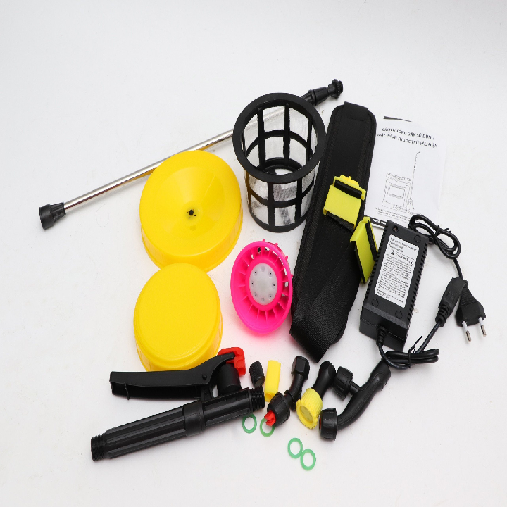 – Phụ tùng đi kèm : Lọc rác, Dây đeo, Cần phun, Tay cầm van bóp, Bộ béc phun nhựa 4 béc, Cần 3 bec inox, Nắp bình nước, Bộ sạc, Dây nước 2 đầu răng.