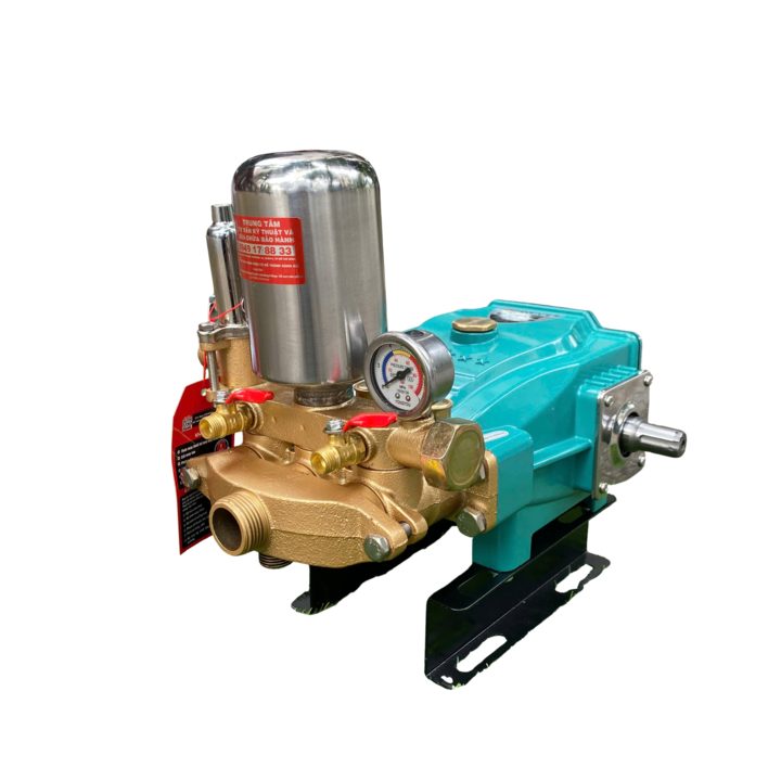- Vật liệu bền bỉ: Thân máy thường được làm từ gang hoặc kim loại chắc chắn, được sơn tĩnh điện chống gỉ sét. Piston có thể làm bằng sứ hoặc inox, giúp hạn chế ăn mòn, tăng độ bền và tuổi thọ cho đầu xịt.