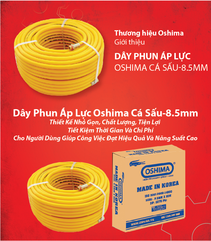 – Dây Phun Xịt Áp Lực Oshima Cá Sấu 8.5mm HQ 8.5*50 được sản xuất trên quy trình công nghệ hiện đại của Nhật Bản.