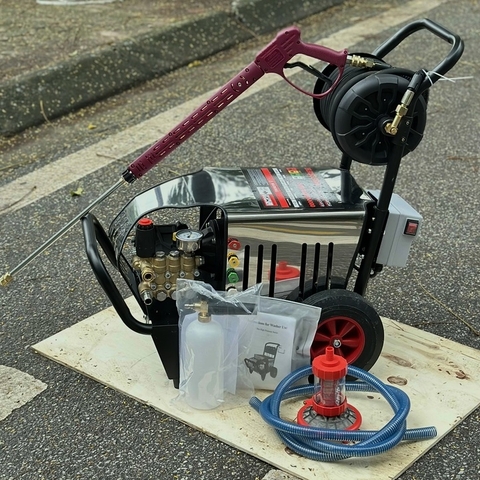 - Tính Di Động Cao: Máy có thiết kế gọn gàng, tích hợp bánh xe và tay cầm chắc chắn. Một số mẫu còn có khay đựng phụ kiện tiện lợi, giúp cất giữ gọn gàng súng, dây và béc phun.