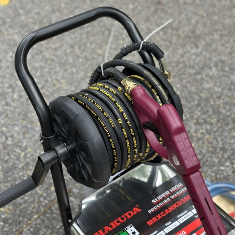 - Tối Ưu Hóa Áp Lực và Lưu Lượng Nước: Máy Hakuda hoạt động với áp lực dao động từ 100 Bar đến 150 Bar (tùy model), đủ mạnh để đánh bật các mảng bám cứng đầu nhất. Tuy nhiên, lưu lượng nước được kiểm soát ở mức thấp, thường chỉ 7-8 lít/phút. Sự cân bằng này đảm bảo làm sạch nhanh nhưng vẫn tiết kiệm nước đáng kể so với các phương pháp truyền thống.