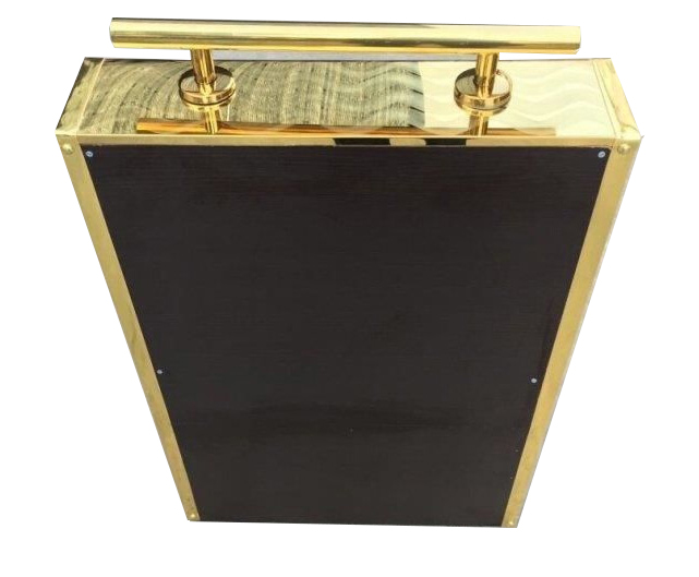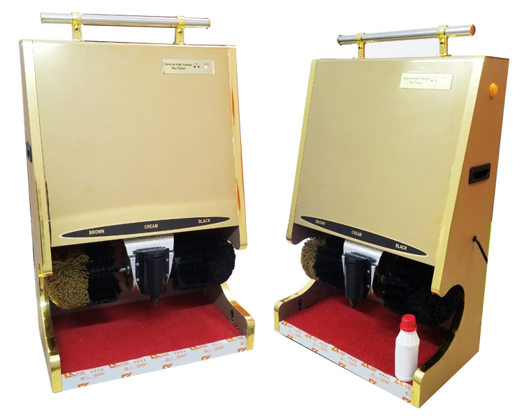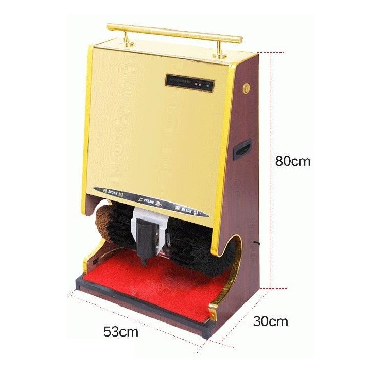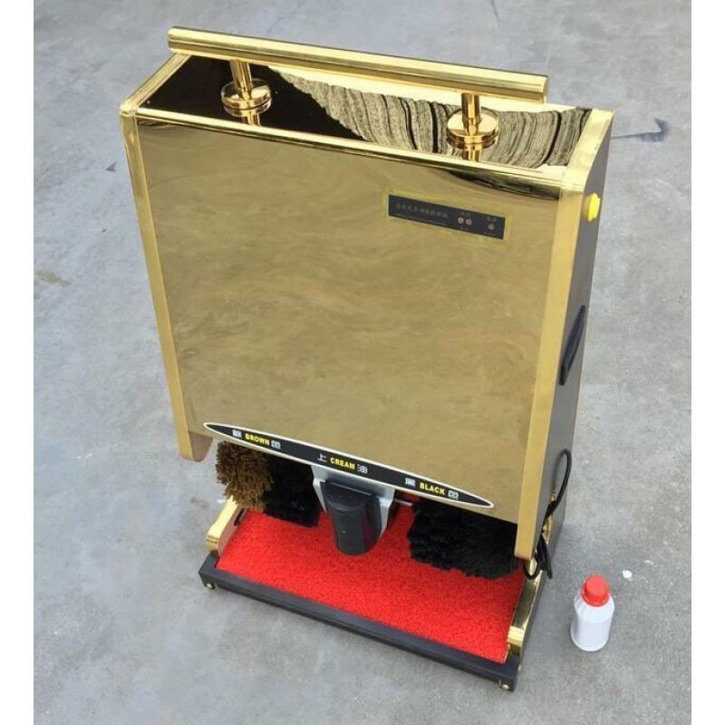 – Phần thân trên của máy đánh giày được thiết kế như một chiếc gương inox màu vàng.