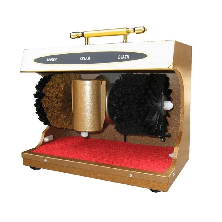 – Máy có thiết kế có tay cầm với 4 chổi đánh giày: 2 chổi đánh bụi và 2 chổi đánh bóng (Màu đỏ và màu đen)