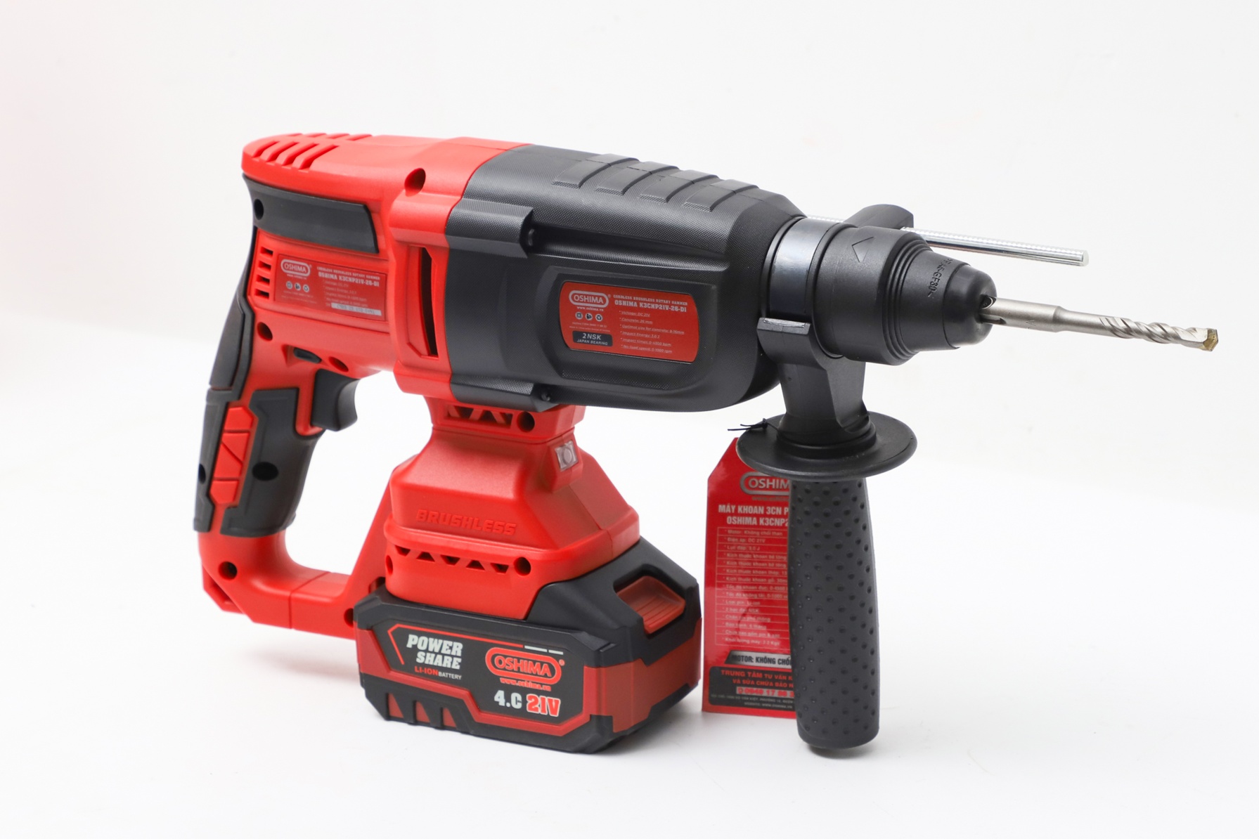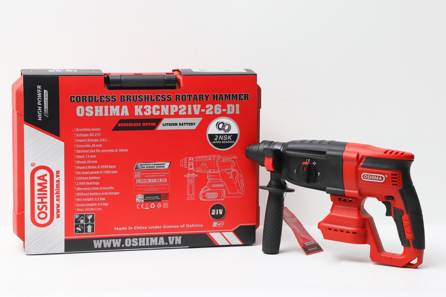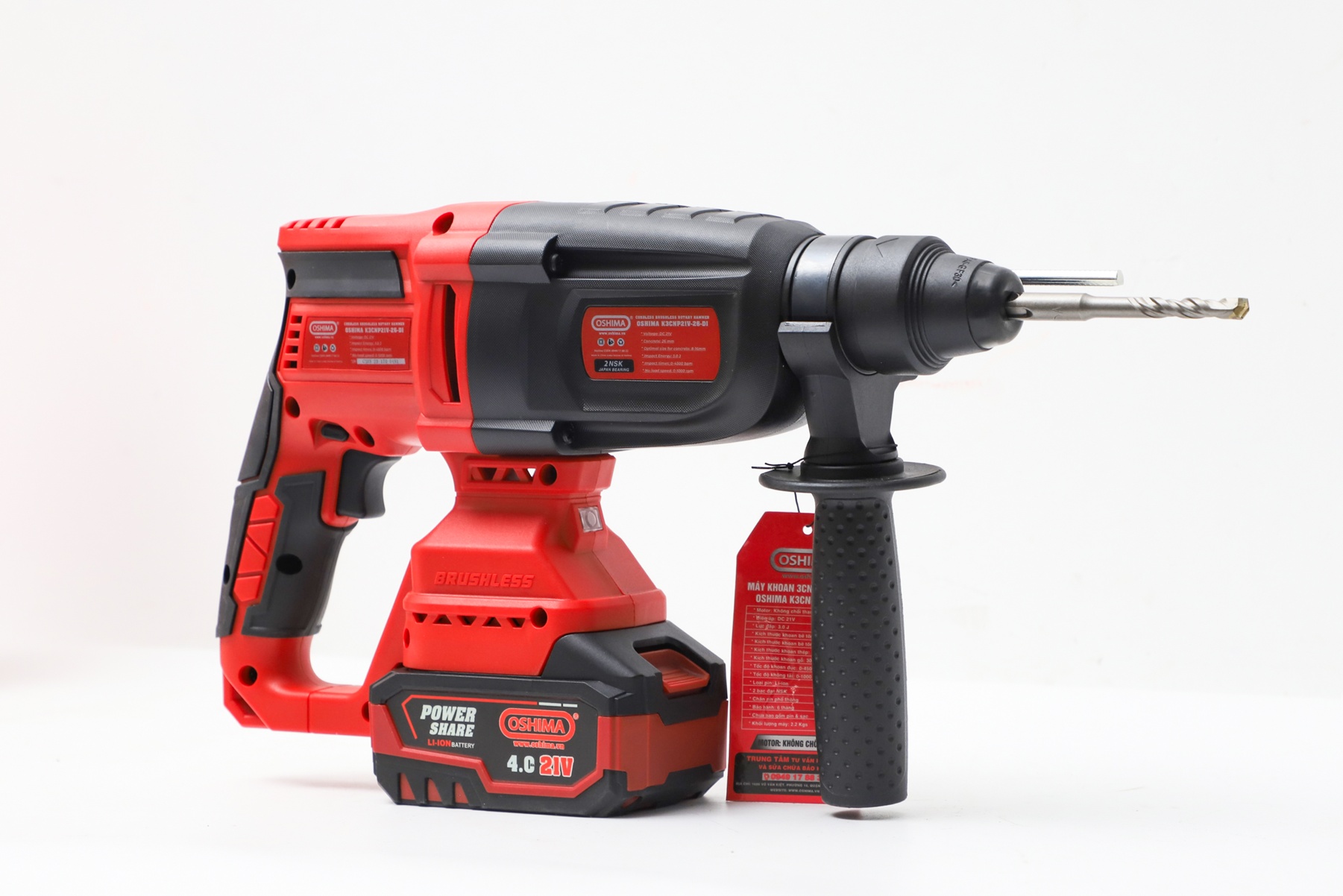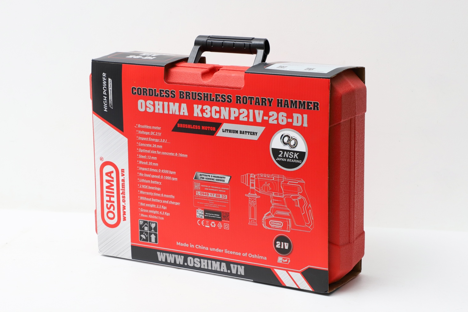 Máy khoan 3 chức năng pin Lithium Oshima sử dụng tiện lợi, an toàn, không cần kéo dây điện, khi thao tác. Các chi tiết búa đục bằng thép chuyên dụng. Ngoài ra, máy trang bị motor dây đồng 100% và bạc đạn NSK Nhật Bản giúp thiết bị vận hành êm ái, bền bỉ. nghiệt.