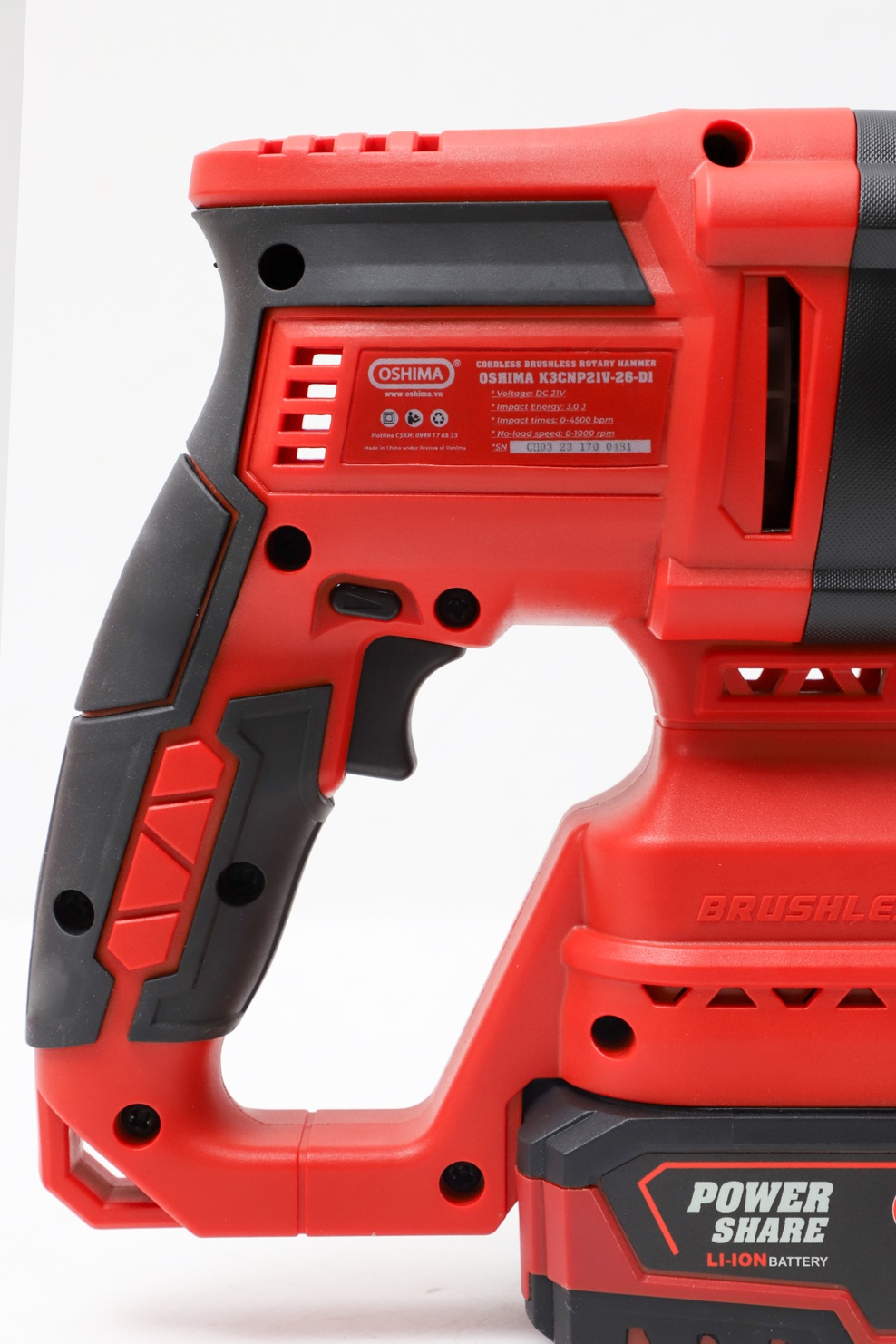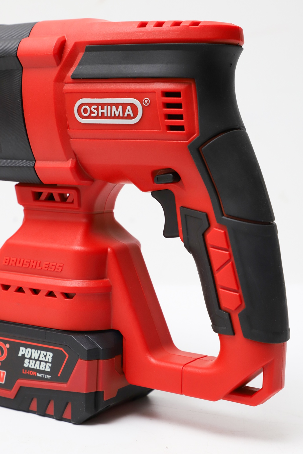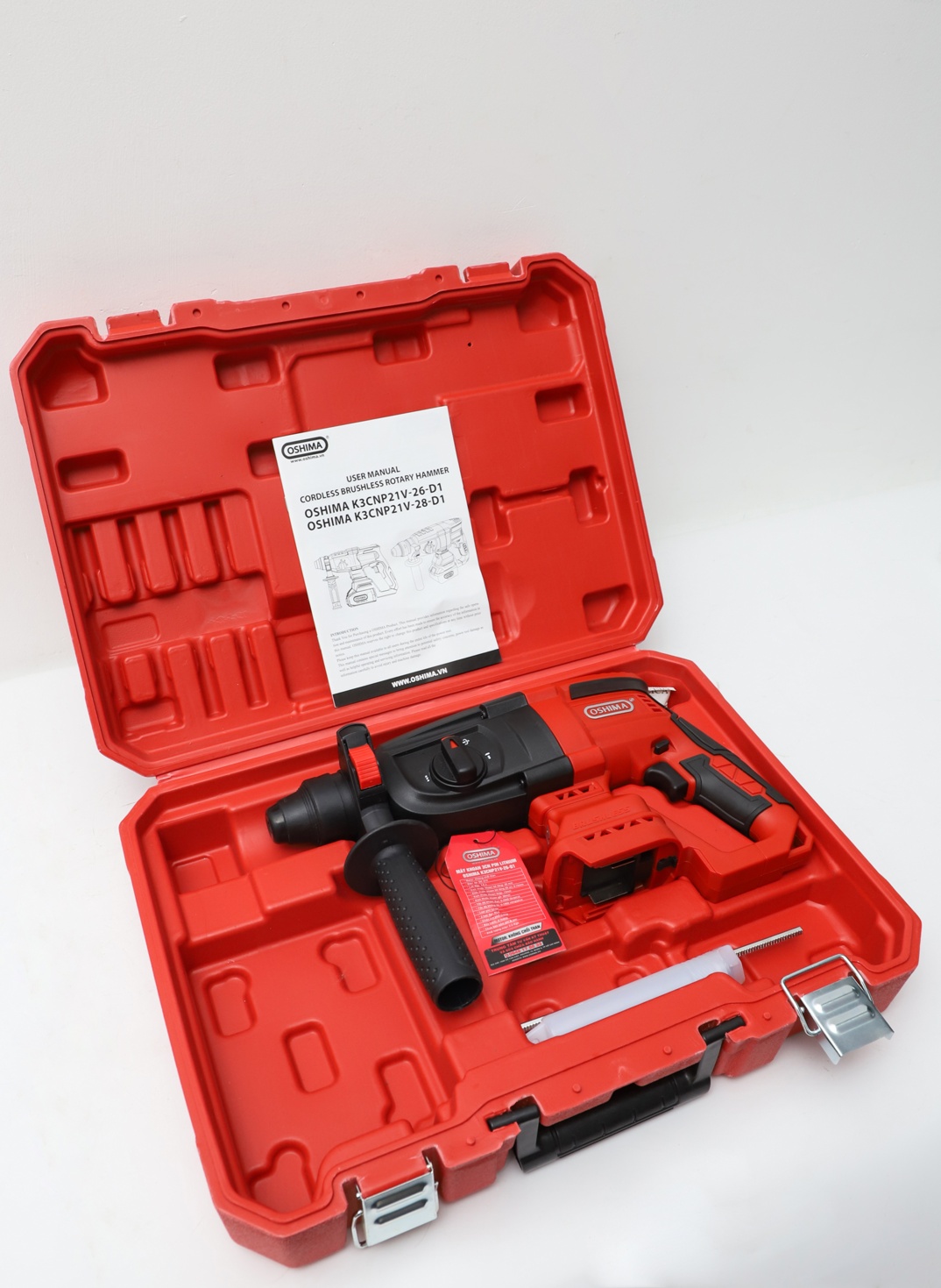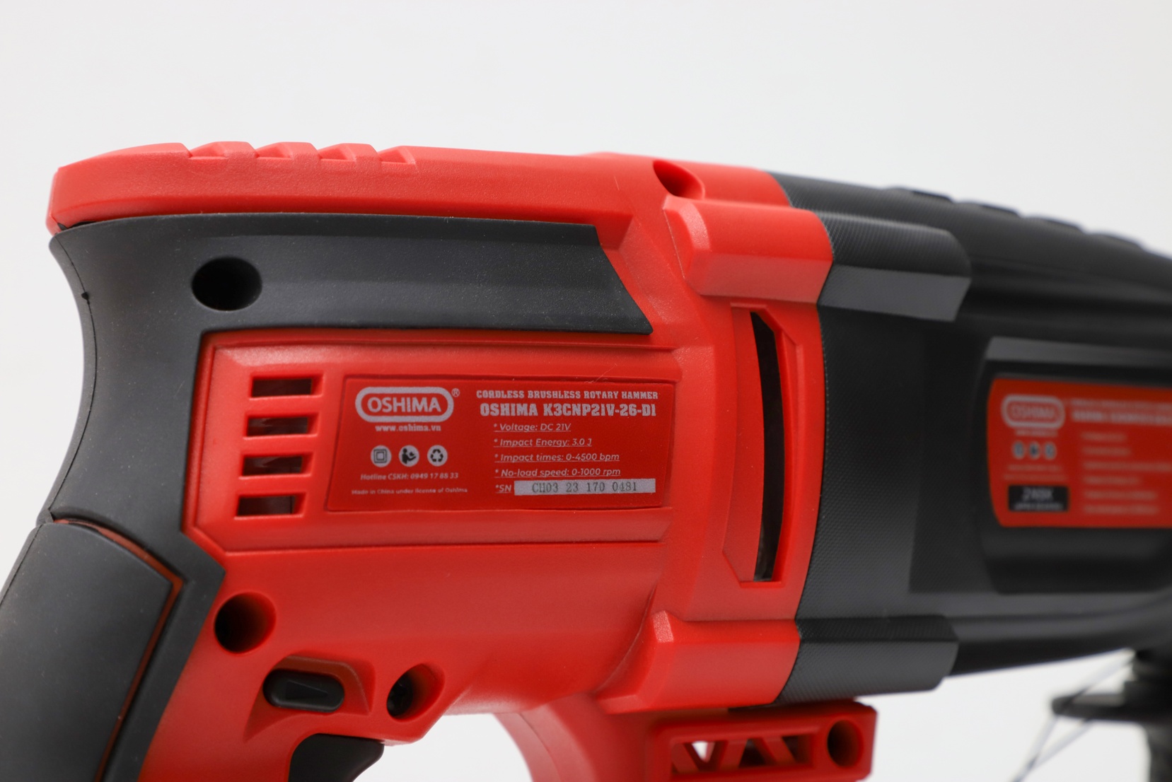 Máy khoan 3 chức năng pin Lithium Oshima sử dụng tiện lợi, an toàn, không cần kéo dây điện, khi thao tác. Các chi tiết búa đục bằng thép chuyên dụng. Ngoài ra, máy trang bị motor dây đồng 100% và bạc đạn NSK Nhật Bản giúp thiết bị vận hành êm ái, bền bỉ. nghiệt.