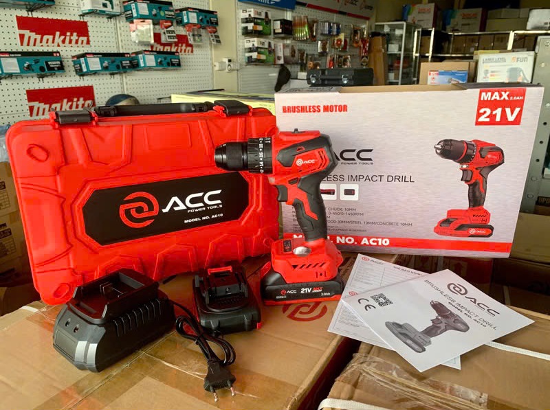 – Máy Khoan Dùng Pin ACC 21V AC10 thiết kế bộ truyền động cải tiến cho năng suất và lực xoắn cao hơn. Mạch điện tử bảo vệ tuổi thọ pin dài hơn và 2 chế độ khoan xoay và khoan tường tiện dụng.