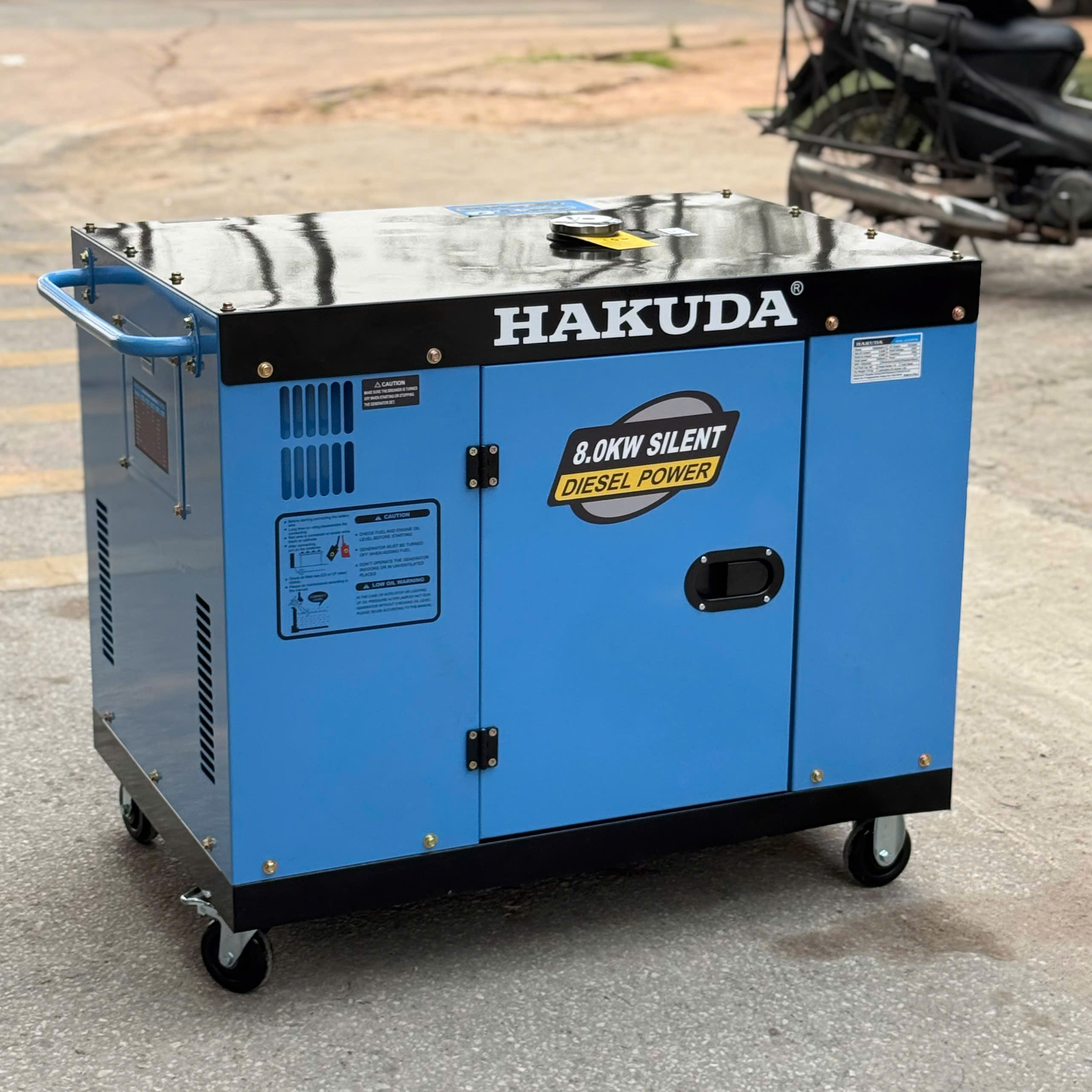 – Tổ máy phát điện chạy dầu diesel Hakuda 8kw 1pha, có đề, có vỏ chống ồn. Cuộn điện dây đồng 100%, sản xuất theo tiêu chuẩn ISO9001