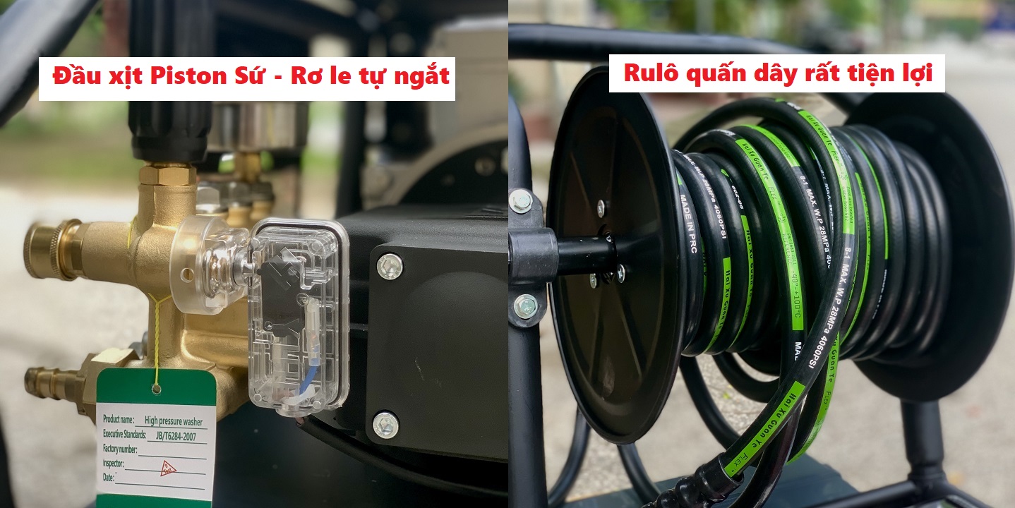 • Độ bền, tuổi thọ máy cực cao: Nhờ sử dụng đầu bơm piston sứ có khả năng chống mòn, chống oxy hóa, giúp máy bền bỉ và có tuổi thọ lâu dài hơn.