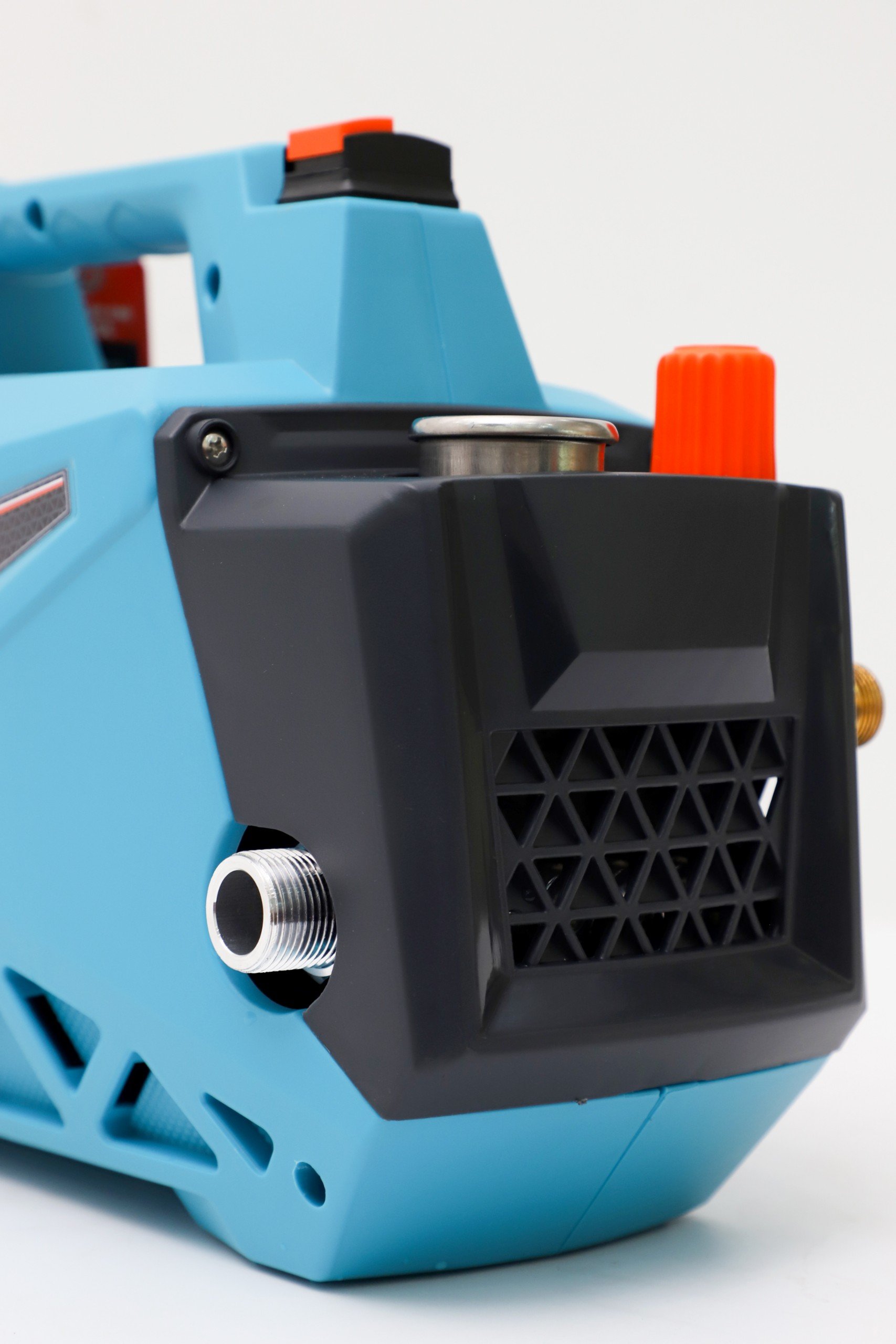 – Xịt rửa khoẻ, áp lực cao, máy chạy mô tơ từ không chổi than, tự ngắt khi nhả cò súng.