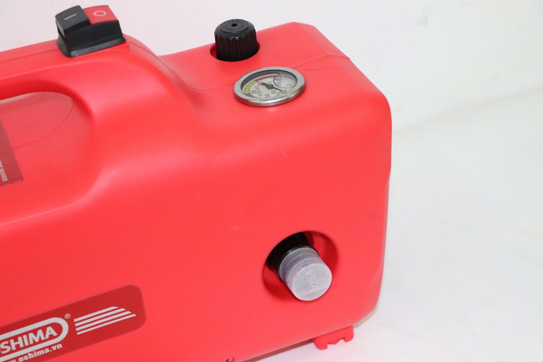 – Ấn vào cò đầu phun và bật vòi nước để xả không khí bên trong máy.