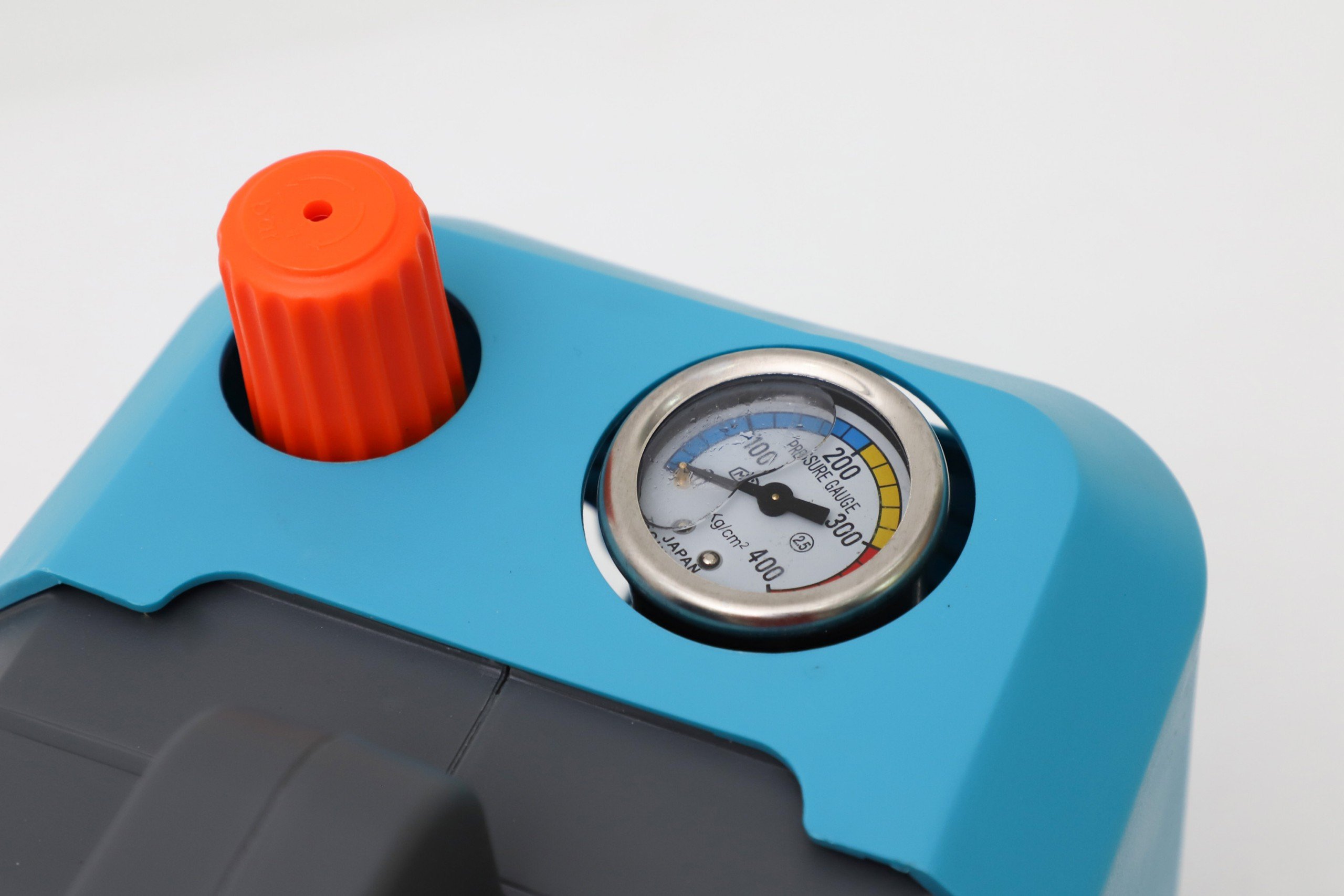 – Ấn vào cò đầu phun và bật vòi nước để xả không khí bên trong máy.