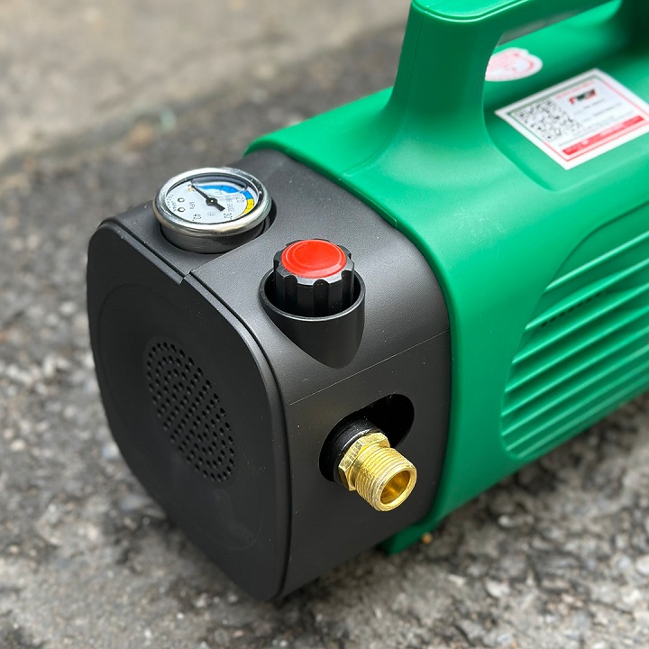 – Xịt rửa khoẻ, áp lực cao, máy chạy mô tơ từ không chổi than, tự ngắt khi nhả cò súng.