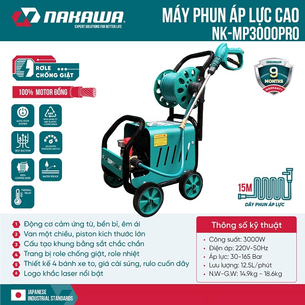 Máy Xịt Rửa Nakawa 3000W NK-MP3000Pro - Sản Phẩm Xịt Rửa Chất Lượng