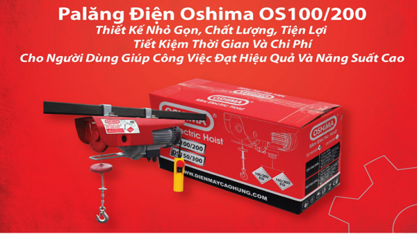 – Palang điện Oshima OS 300/600 là công cụ phổ biến giúp người sử dụng nâng hạ các thiết bị sản phẩm lên 1 cách dễ dàng mà không phải tốn nhiều công sức