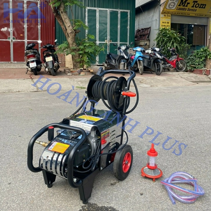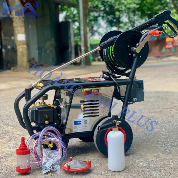 Phụ kiện : lọc rác, dây hút 2m, dây cao áp 15m, súng cao áp, thanh nối dài, 4 béc phun , bình bọt 1L.